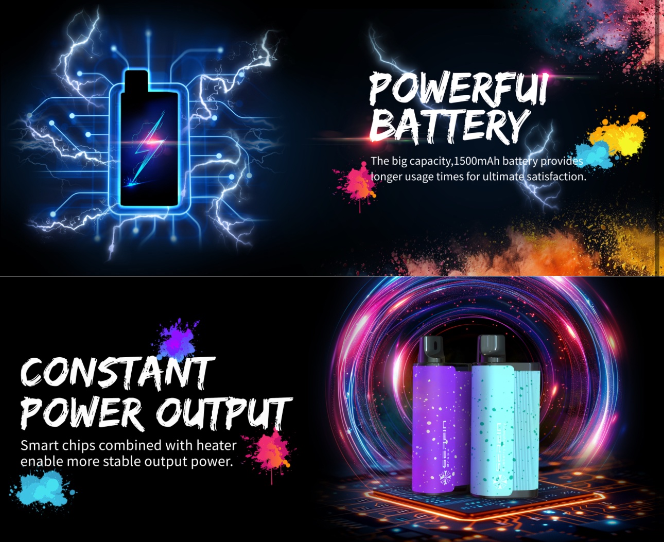 Boasting a robust battery and cutting-edge chipset, the Hunter ensures enduring performance. With adjustable power settings, experience consistent draws tailored to your preference. Elevate your vaping game today! No need to charge!